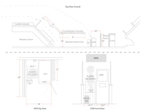 Each pay day, we would have a line queuing perpendicular to the Western Union window, which was located in our front lobby as you’d head past Floral into Produce. This queuing solution fixed traffic flow and offered a new space for floral display. We were also able to add a privacy area for the ATM, which had previously been in the Pharmacy area, but made more categorical sense next to Western Union.