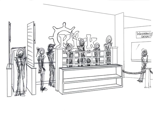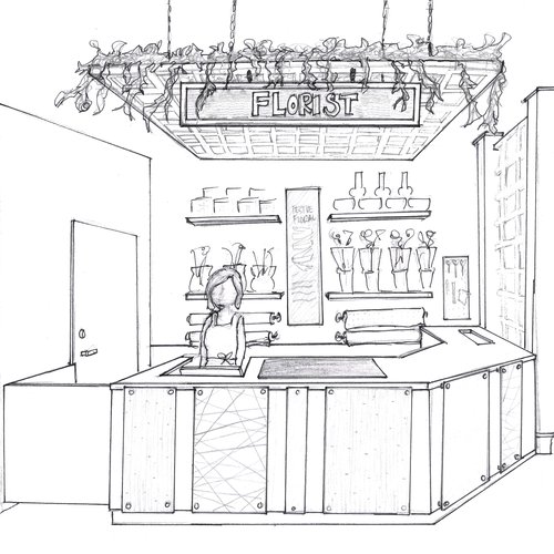 Phase one of this project started in groups proposing different design themes, which were then chosen by Tony and Brent. My team's "shipwreck" theme was selected, and then the studio broke off into pairs to design the ten sections of the gift shop. My partner and I designed the Gallery and T-Shirt Display, which later changed to a high-end gifts display.