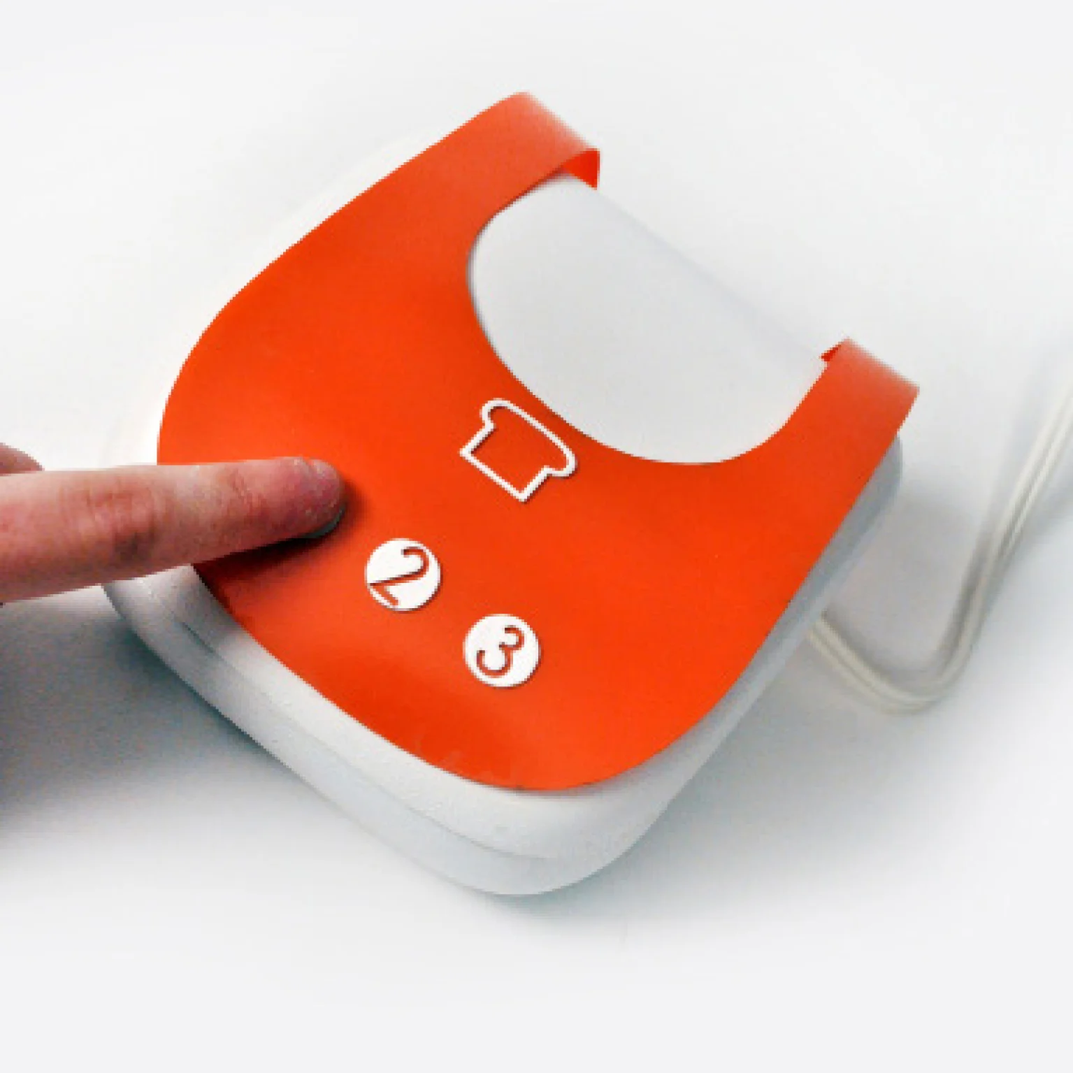From concept sketches, I created a prototype in blue foam, and then finalized my concept in CAD. I vacuum-formed a final model out of ABS, though manufacture would need to be injection molded PP, and laser-cut the living hinge and interface details.